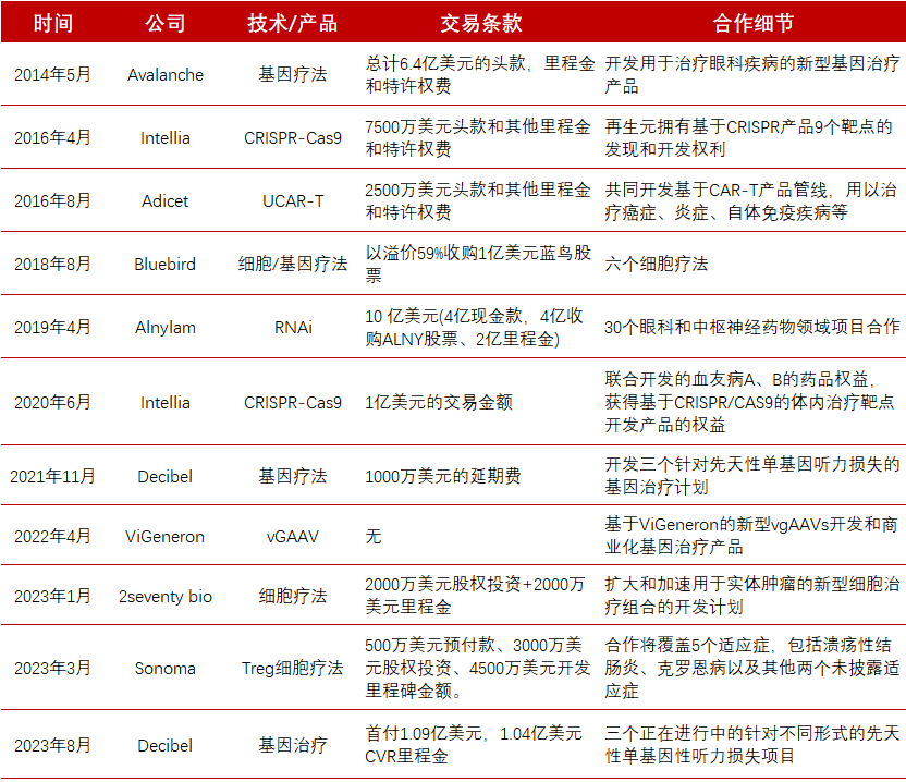 ▲ 再生元CGT领域合作与收购(医麦客整理,如有错漏欢迎指正)