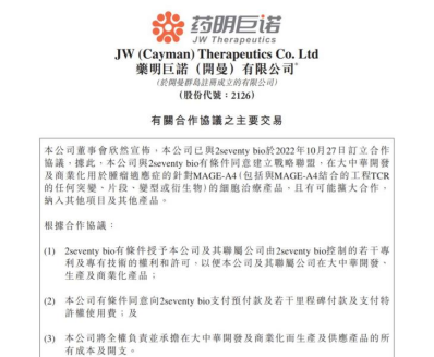 这一情况引发了资本市场投资者热议,并且直呼“划算”!遥想2022年10月,国内细胞疗法头部企业药明巨诺就已经与2seventy bio围绕MAGE-A4项目达成战略合作,并且为此项目支付了300万美元预付款,后续还有开发相关的7000万美元里程碑。