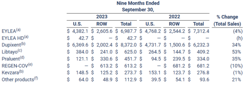 从财务表现来看,2023年前三季度,再生元总收入96.8亿美元,其中产品净销售额总额52.3亿美元,合作收入为41.3亿美元;R&D费用为32.6亿美元,SG&A费用为18.9亿美元。