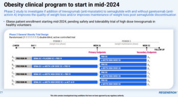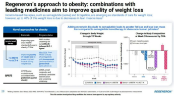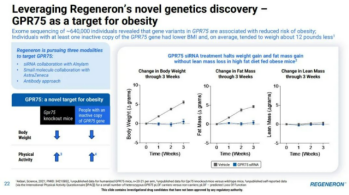 值得关注的是,再生元前不久公布了其在减重领域的进展。再生元公司侧重减重结果的质量。选择性地减少脂肪含量,且减少肌肉含量的流失。据悉,GPR75基因与肥胖显著相关,目前再生元正在通过内部和外部的组合开发,拓展siRNA/小核酸、小分子和抗体等多种GPR75靶点的疗法。