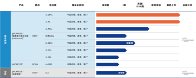 与复星凯特类似,药明巨诺由Juno和药明康德共同出资组建。专注于研发、生产和商业化细胞免疫治疗产品,当前药明巨诺已经建立了国际领先的细胞免疫治疗产品开发平台,涵盖了血液肿瘤、实体肿瘤和自身免疫性疾病的治疗领域。