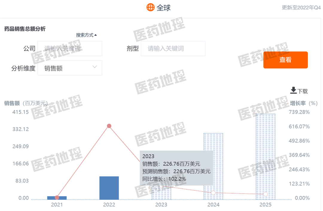 图1: 英克司兰全球销售额 来源:Pharma ONE智能药物大数据分析平台,中国医药工业信息中心