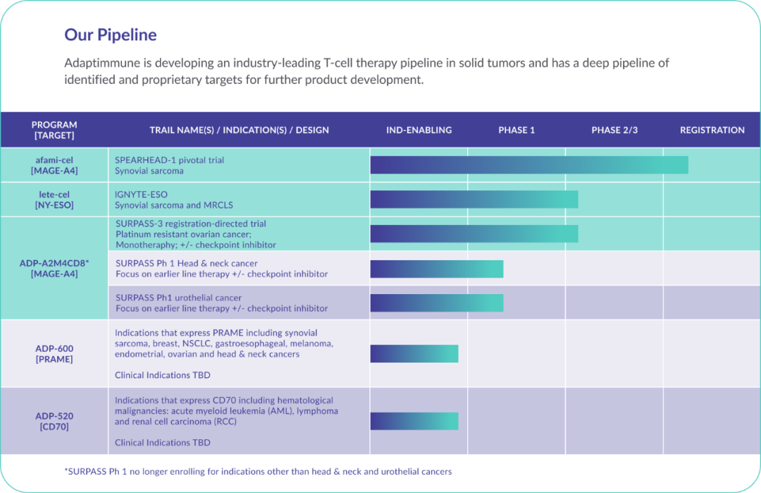 Adaptimmune整体管线(来源:Adaptimmune官网)