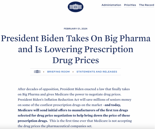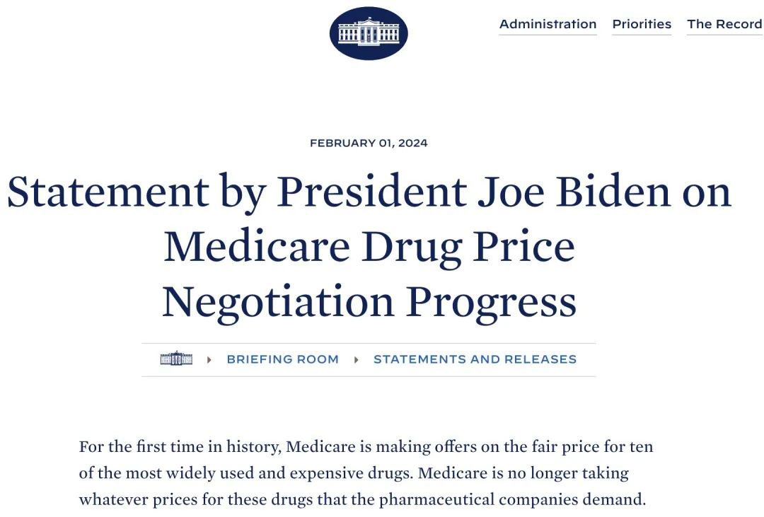 当地时间2月1日,美国白宫在其官网宣布,总统拜登向大型制药公司发起挑战,并降低处方药价格。意味着,拜登政府与大型制药企业就10种药物的价格谈判正式启动。白宫表示,美国医疗保险和医疗补助服务中心当天将最初报价通知制药公司,制药公司将有30天的时间做出回应,可以接受报价或者还价。