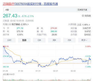然而,本次A股上市公司之间围绕企业“控制权”的并购动作,似乎并没有受到投资者的认可。在过去的几个交易日,迈瑞医疗的股价呈现下行波动。