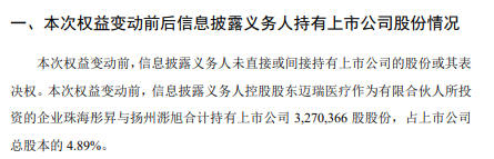 根据惠泰医疗发布的详式权益变动报告书,收购前珠海彤昇与扬州浵旭合计持有惠泰医疗4.89%的股份。
