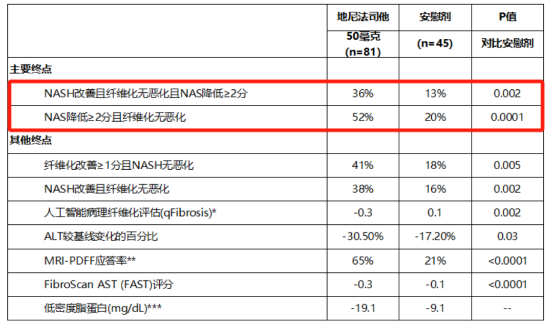 若要取得病理学验证的成功,药企需要证明患者用药后至少满足以下一条标准:1)患者病理学评分(NAS)改善且肝纤维化无进展;2)患者肝纤维化改善且NAS评分无恶化。