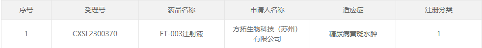 阶段:2023年8月15日,方拓生物科技(苏州)FT-002注射液IND申请获CDE受理。11月6日,FT-002注射液获得中国国家药品监督管理局药品审评中心(CDE)临床试验许可。