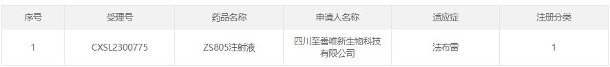 阶段:2023年11月11日,四川至善唯新ZS805注射液IND申请获CDE受理。