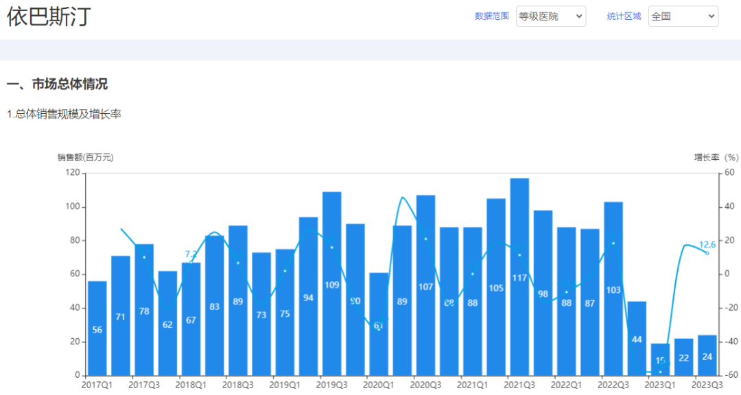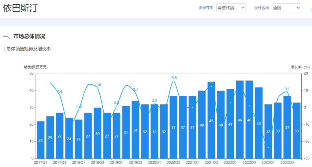全国零售渠道依巴斯汀销售情况(截至2023年4季度)