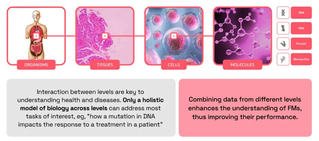 它们远未达到有益效果,正如对自然语言或图像所观察到的那样。目前的模型也局限于单一的生物尺度,并且很少有努力试图捕捉生物学的全部多尺度复杂性。