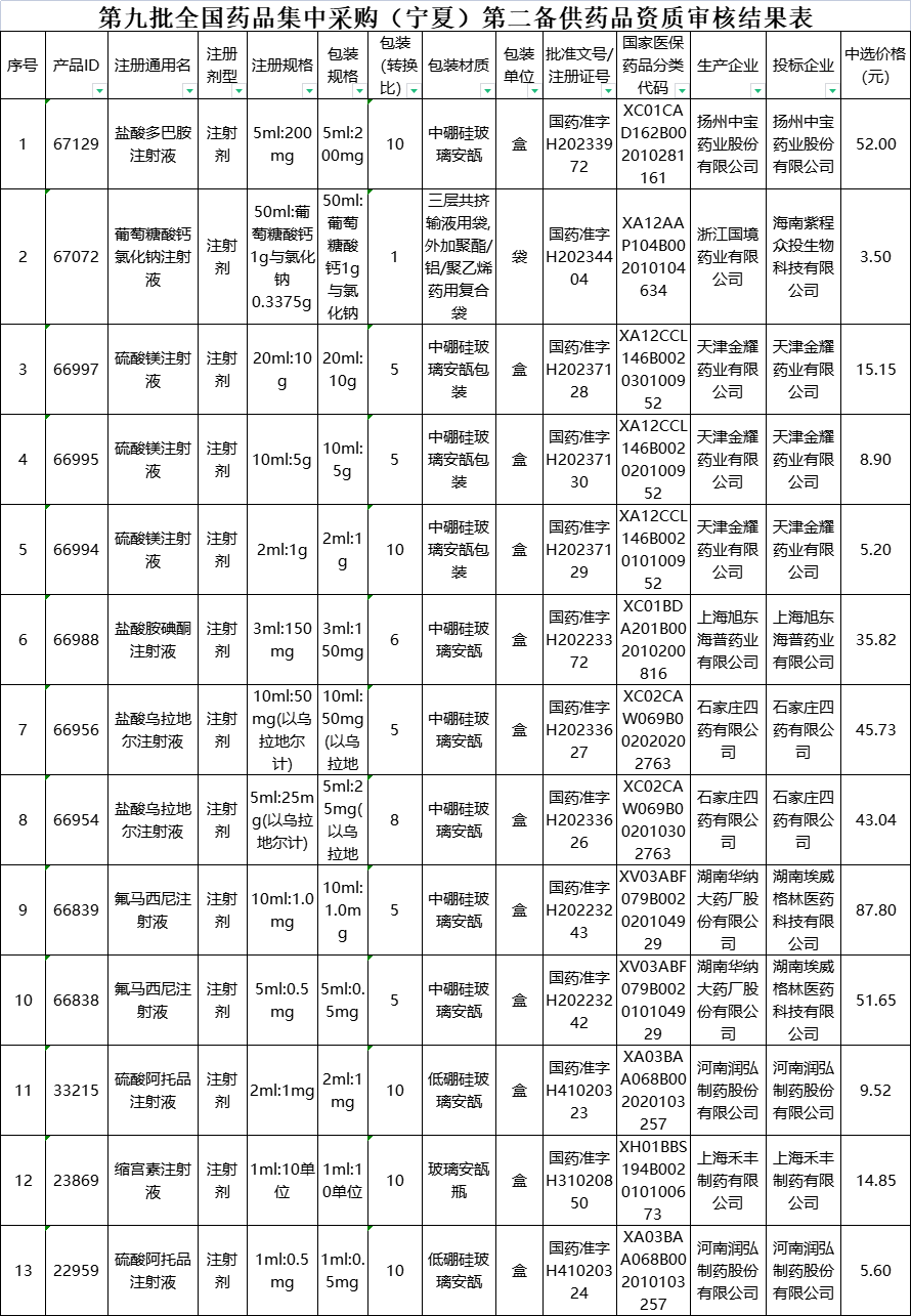 《通知》指出,根据自治区医疗保障局相关工作部署及要求,2024年2月6日至2月18日,宁夏回族自治区公共资源交易服务中心发布《关于公示第九批国家组织药品集中采购中选、备供、第二备供药品资质审核结果的通知》,对资质审核结果予以公示并开通申诉通道,期间无申(投)诉。