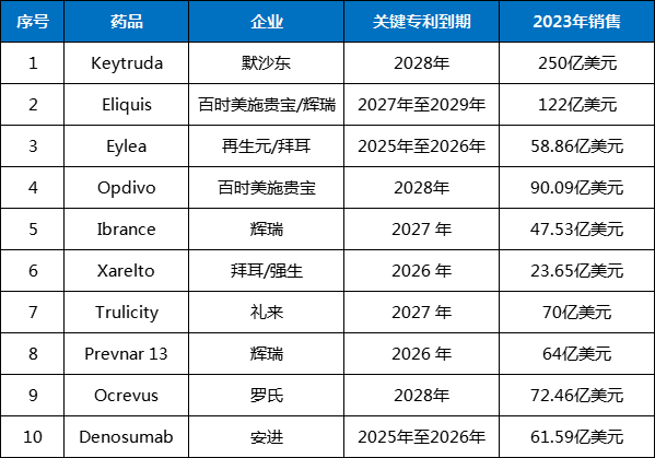 以下是10款未来5年关键专利到期的重磅炸弹,它们在2023年的总销售额超过了800亿美元。