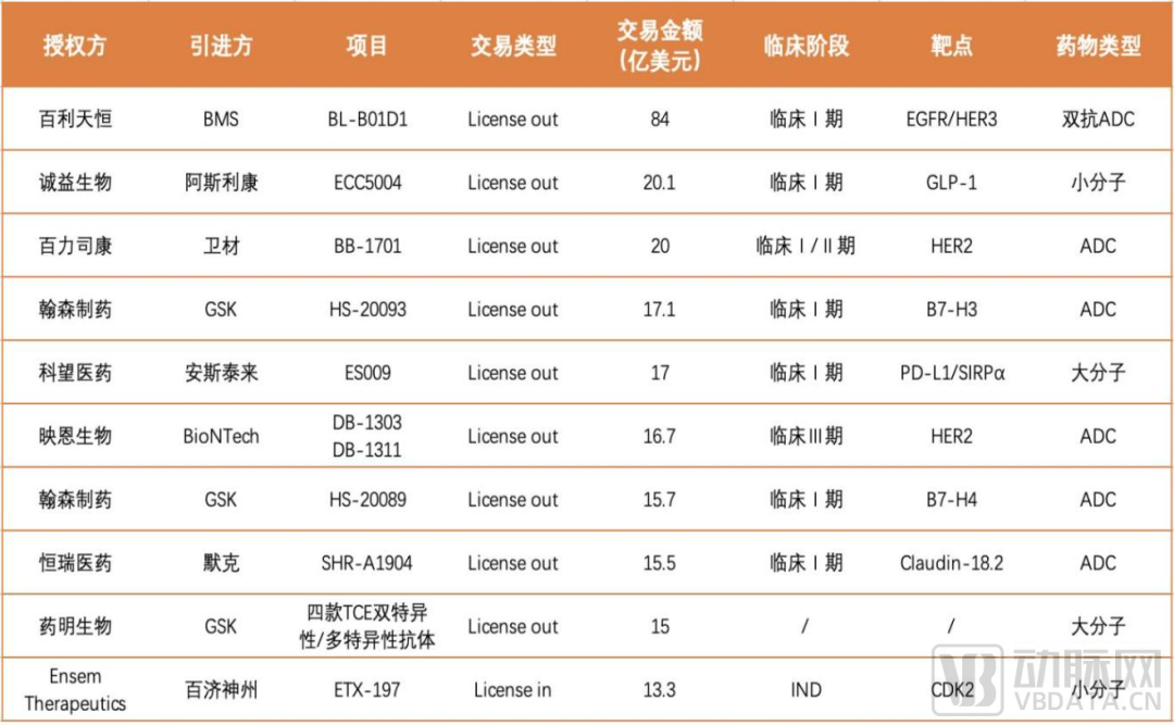2023年中国药企交易TOP10 来源:《2023中国药企BD报告》