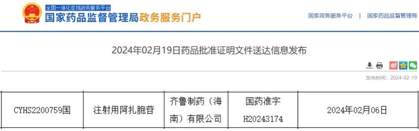 近日,国家药监局官网公示,齐鲁制药递交的4类仿制化药注射用阿扎胞苷的上市申请获批并通过一致性评价。