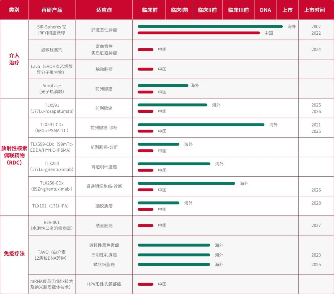 以治疗性核药为例,国内临床进入三期的管线除了诺华的Pluvicto之外,有一家国内企业的RDC管线也同时进入了三期:先通医药的镥[177Lu]氧奥曲肽,适应症均指向胃肠胰腺神经内分泌肿瘤,是诺华Lutathera的同靶点产品。
