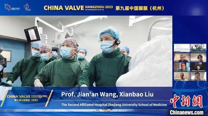 图为王建安(图右)教授团队在China Valve(HANGZHOU)向全世界心血管病同道进行多场手术演示。浙江大学医学院附属第二医院供图