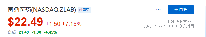 受此消息提振,2月27日再鼎医药(09688)午后急速拉升,截至盘后收涨7.15%。