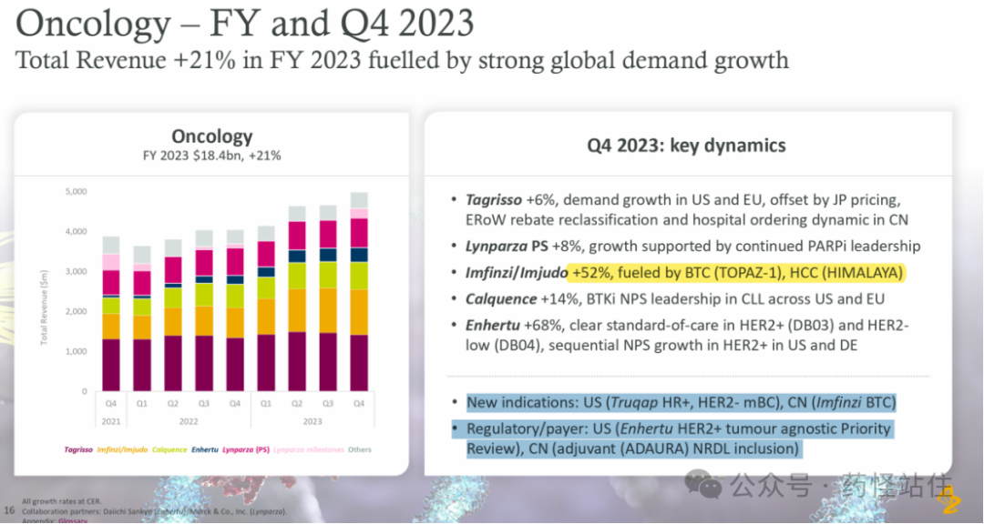 2024年2月8日,阿斯利康全年业绩报告显示,公司力争:至2023年,AZ产品覆盖一半以上的肺癌患者,成为全球肺癌治疗领导者。肺癌布局上,AZ是目前唯一拥有免疫、靶向、ADC(Enhertu)3种商业化的品种的制药公司。