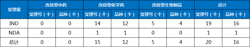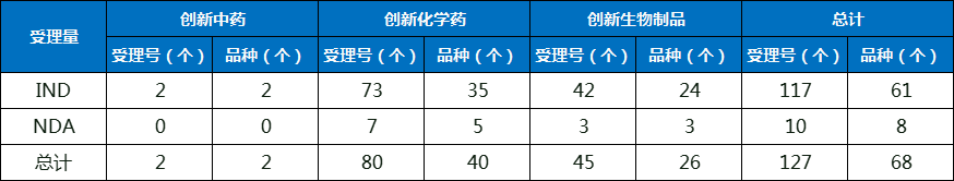 以注册申请审评任务分类统计,IND申请61个品种(受理号117个),同比增长69.44%;NDA申请8个品种(受理号10个),同比增长166.67%。