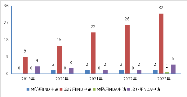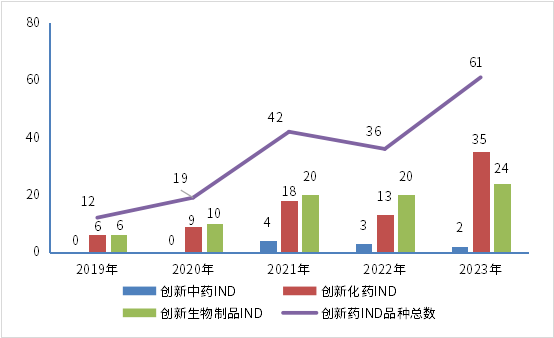 2023年受理四川省国产化学药1类创新药40个品种(受理号80个),IND申请35个品种(受理号73个);NDA申请5个品种(受理号7个)。详见表5。