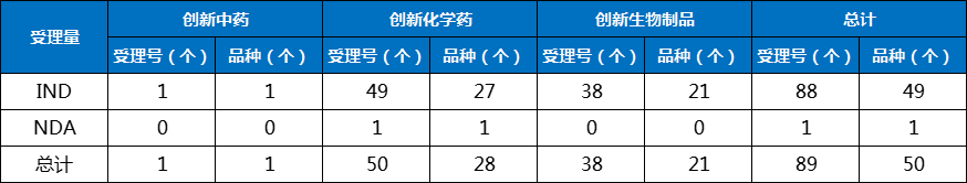 表1 2023年四川省1类创新中药、创新化学药、创新生物制品注册申请受理情况