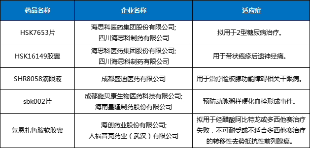 表5 2023年四川省1类创新化药NDA申请受理品种情况