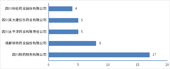 本年度的四川省化药一致性评价申报排行榜中,西南药业股份有限公司为第一,共计申报8个受理号(5个品种)。详见表6。