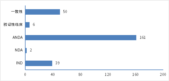 四川省2023年CDE共完成审评的化学药品种共计386个(578个受理号),以审评任务类别统计(剔除补充、进口),IND申请39个品种(受理号63个);NDA申请2个品种(受理号2个);ANDA申请161个品种(受理号217个),验证性临床申请6个品种(受理号7个);一致性50个品种(受理号70个)。详见图12。
