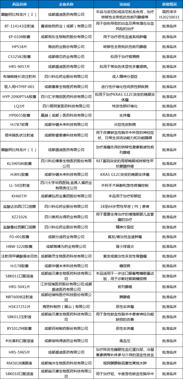 表3 2023年四川省1类创新中药、创新化学药、创新生物制品完成审评情况