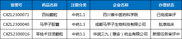 表9 2023年四川省中药完成审评情况(剔除补充、进口)
