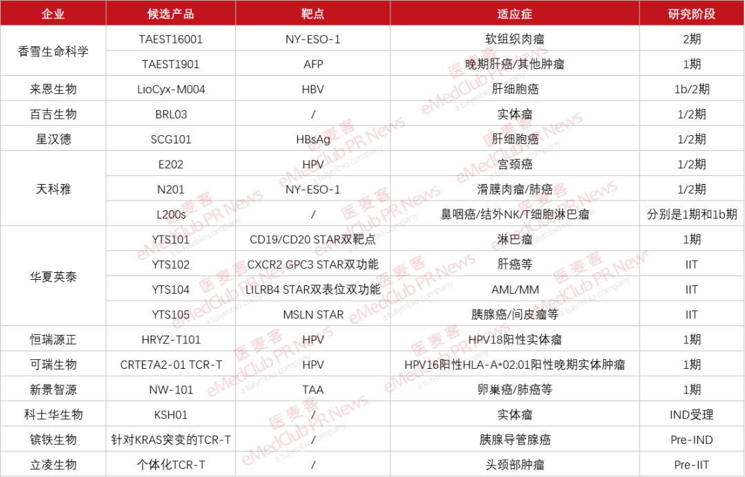 ▲ 12家TCR-T企业进展(图片来源:医麦客整理)