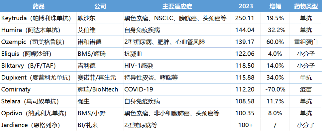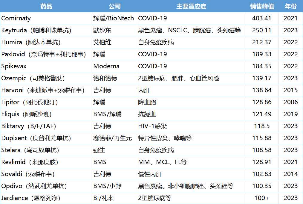 历史上年销售额超100亿美元的药品
