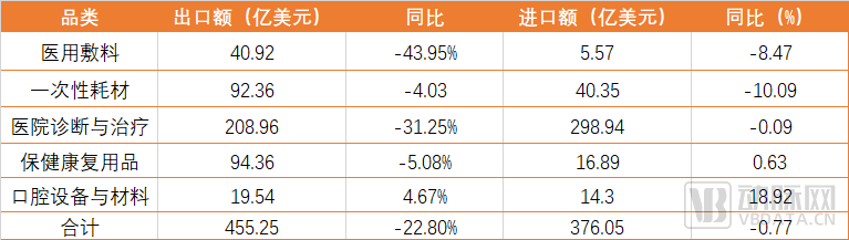 2023年我国医疗器械类产品进出口统计 数据来源:中国医药保健品进出口商会