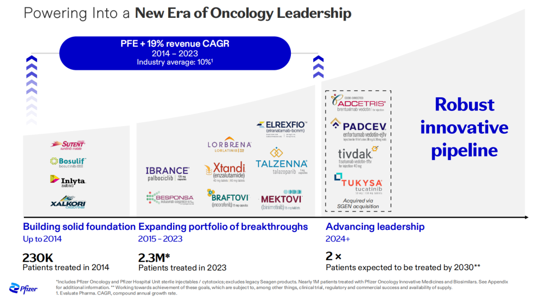 [1]Pfizer fleshes out oncology strategy, targeting 8 blockbuster cancer drugs by 2030.Fierce Pharma.By Angus Liu.Feb 29, 2024 5:42pm.