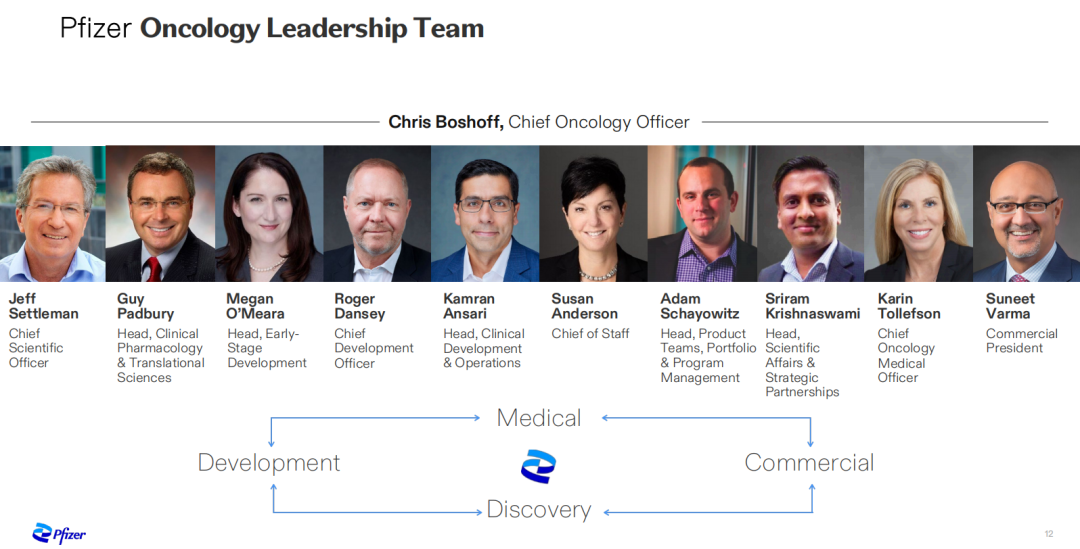 2023年12月,在即将完成对Seagen的收购时,辉瑞公布了其组织结构重组,新成立了辉瑞肿瘤事业部,将肿瘤商业化和研发业务整合在一起,该部门由Chris Boshoff医学博士——在过去的6个月里一直担任辉瑞的肿瘤研发主管领导。