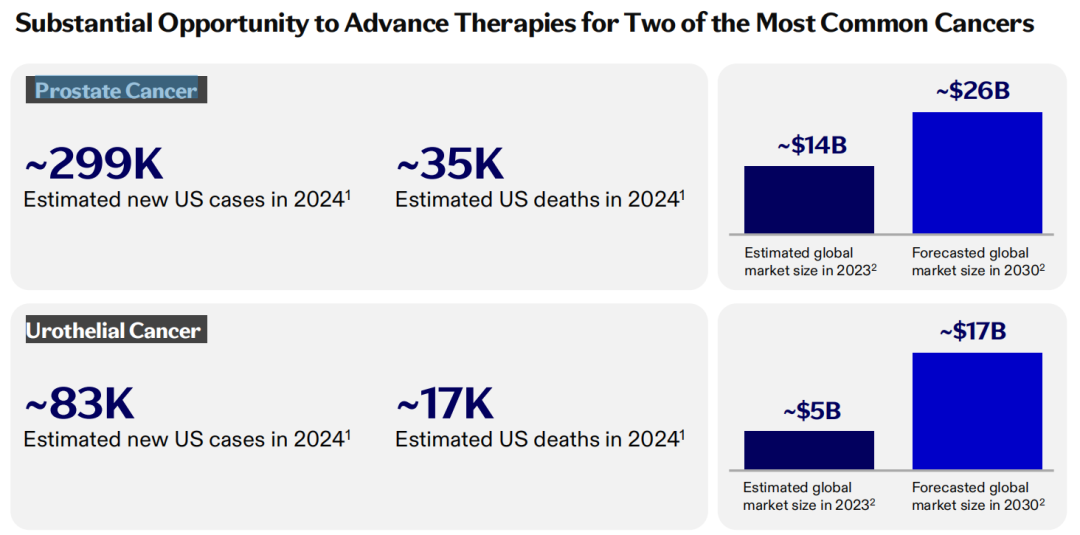 与乳腺癌相反,泌尿生殖系统癌症有望成为辉瑞最大的肿瘤学特许经营权,贡献率约为35%。在这一领域,辉瑞与安斯泰来合作的Padcev与默克的Keytruda的组合正在成为一线膀胱癌治疗的新标准。而荣昌生物已经在中国销售的维迪西妥单抗,也在与Keytruda一起进行3期试验,用于以前未经治疗的表达HER2的膀胱癌。