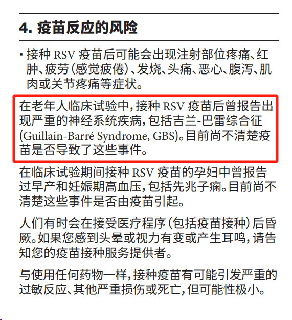 实际上此前在临床试验中已经发现了接种RSV疫苗后出现GBS的情况,这一风险已被纳入CDC的疫苗信息声明中,但仍不清楚是否是疫苗导致此类事件。