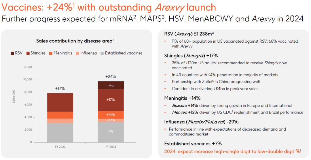 就辉瑞和GSK的巨头之战,本次不良事件可能会是一个转折点。尽管GSK与辉瑞的RSV疫苗先后获批,二者销售额差距依然较大,GSK的RSV疫苗在2023年销售额约12.38亿英镑,约合15.5亿美元,高于辉瑞8.9亿美元。