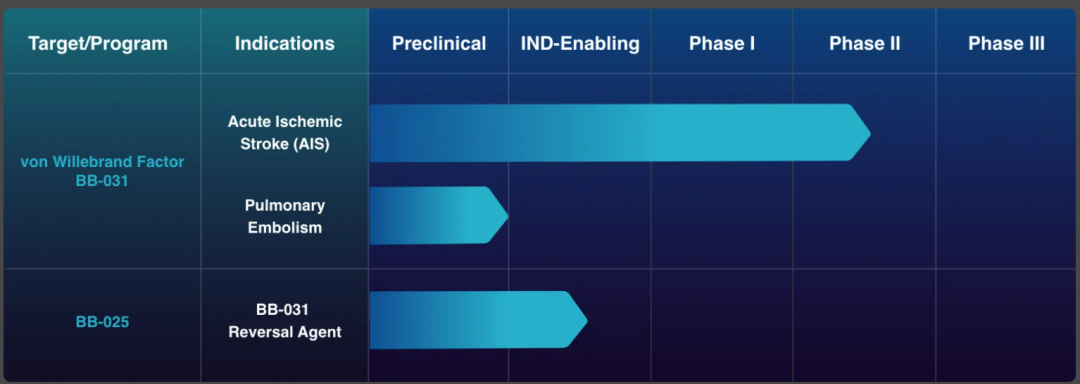 2023年,Basking Biosciences公司公布了BB-031的积极1期临床试验结果,BB-031具有良好的安全性和耐受性,研究中无严重不良事件报告,且BB-031对vWF具有剂量依赖性的抑制作用。该公司计划于2024年在急性缺血性中风(AIS)患者中启动一项2期概念验证试验,并同时推进BB-025进入1期临床研究。