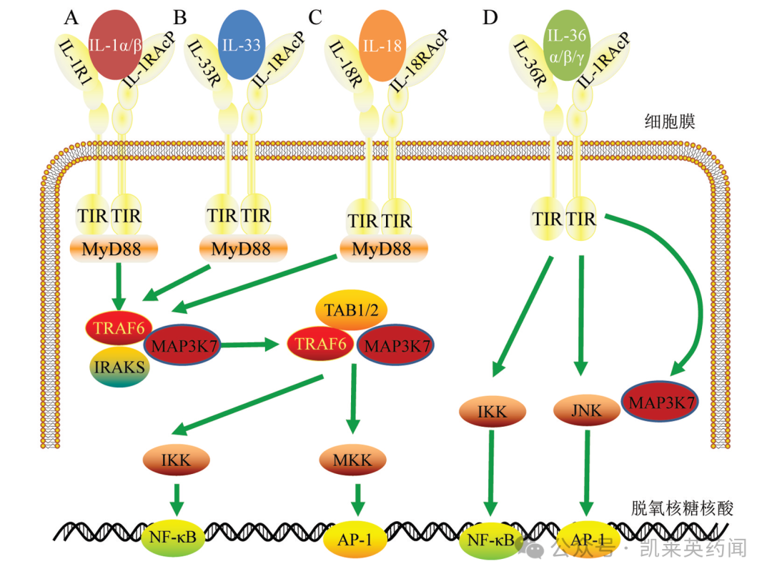 IL-1 家族成员参与炎症和免疫反应,具有不同的生物学功能;