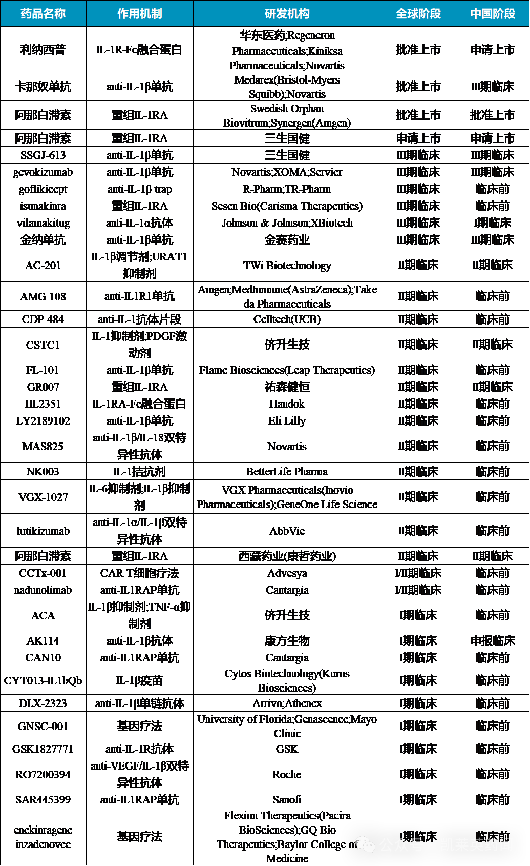 关于IL-1相关药物