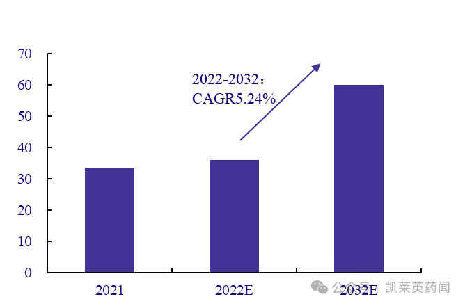 2022 年,全球心包炎治疗市场规模可达到36 亿美元,以5.24%的复合年增长率推算,到2032 年该市场将达到60亿美元。
