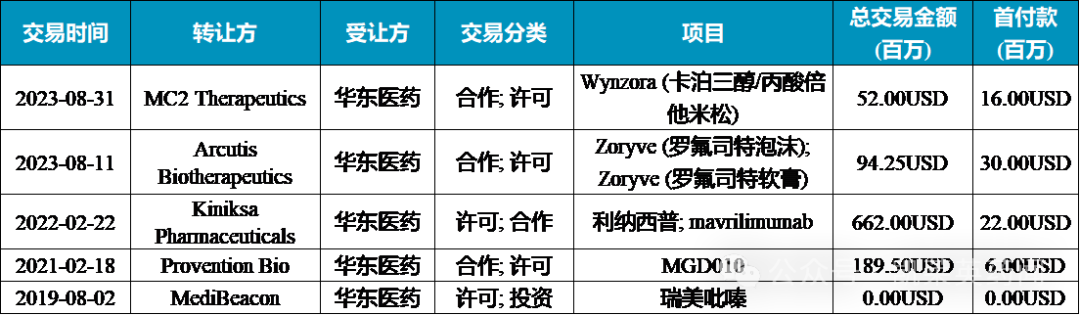 公司在免疫领域的部分交易
