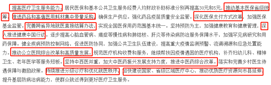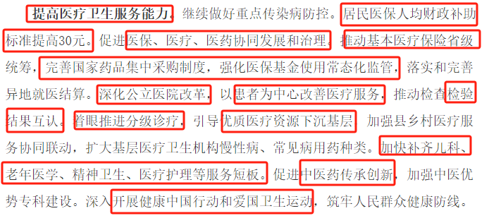 每年报告都有一个专门的段落留给医疗卫生,本文只挑选这一段落内容,对比过往3年报告用词的变化做客观描述,不做个人解读。