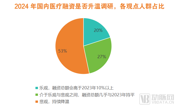 面对资本端的凛冽寒意,接受调研的医疗投资人普遍认为2024年医疗创投会继续降温,占比达到53%。这背后,是当下的医疗行业正在为过去几年过于激进的发展“埋单”。