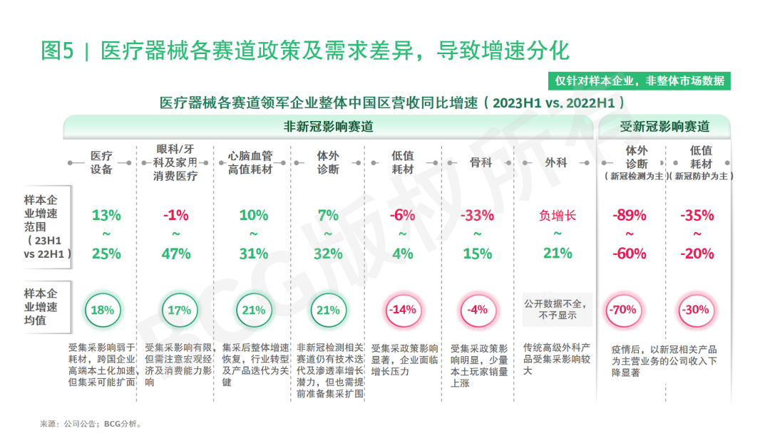 来源:公司公告;BCG分析。注:列举各赛道头部玩家。IVD即体外诊断。1剔除汇率影响。