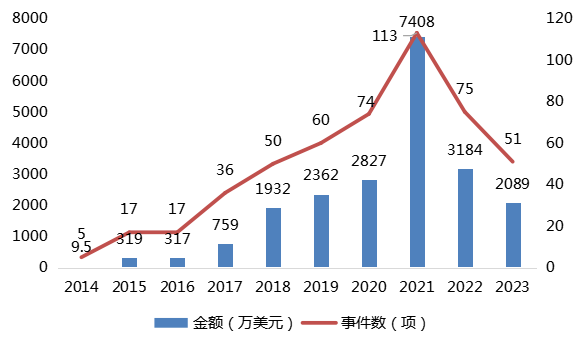 图1:2014-2023年AI赋能药物研发领域投融资事件数及涉及金额 数据来源:公开资料,药智咨询整理