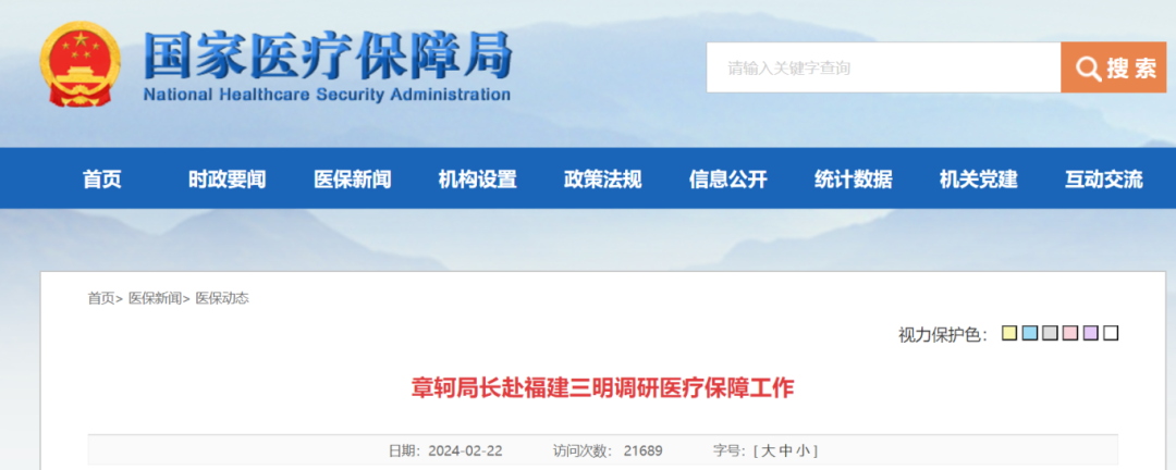 据三明日报报道,2月20、21日,国家医疗保障局党组书记、局长章轲赴福建省三明市调研医疗保障工作。