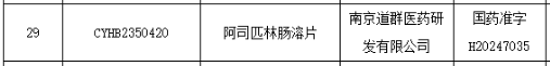 近日,国家药监局发布药品批准证明文件送达信息,包括南京道群医药研发有限公司的阿司匹林肠溶片等在内的多个品种品规过评。